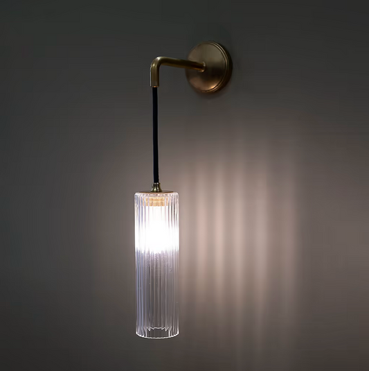 Claremont Small Hanging Wall Light Fluted Glass - Antique Brass