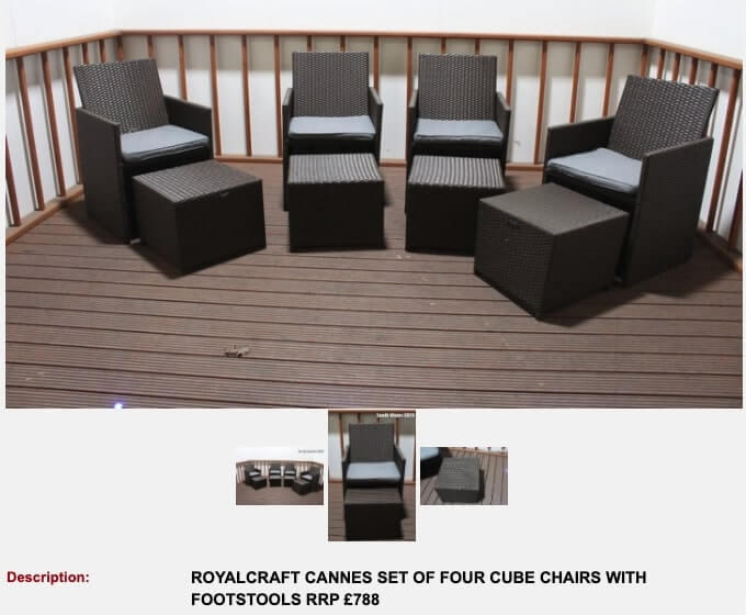 ROYALCRAFT CANNES SET OF FOUR CUBE CHAIRS WITH FOOTSTOOL